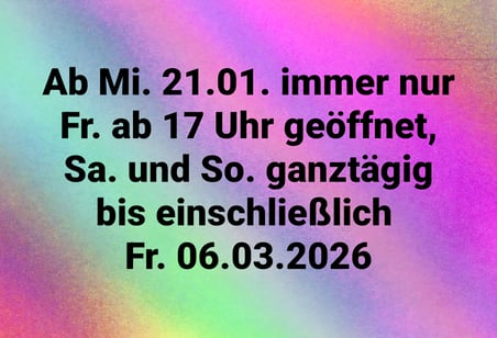 1. Jan. Neujahr erst ab 15 Uhr geöffnet