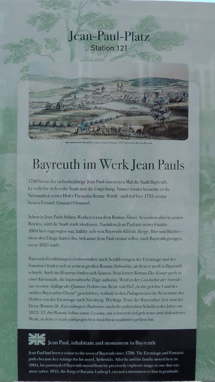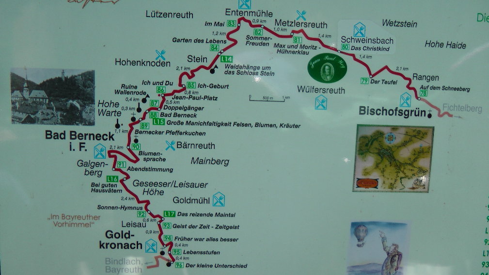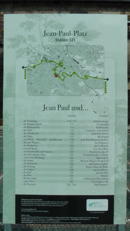 Der Jean-Paul-Weg, der fast 200 Kilometer lange "Poetry-Weg" durch Oberfranken, ist um ein weiteres Teilstück reicher. Jetzt können Wanderer auch zwischen dem Bayreuther Stadtrand und dem Schloss "Fantaisie" auf den Spuren des berühmten Dichters wandeln.